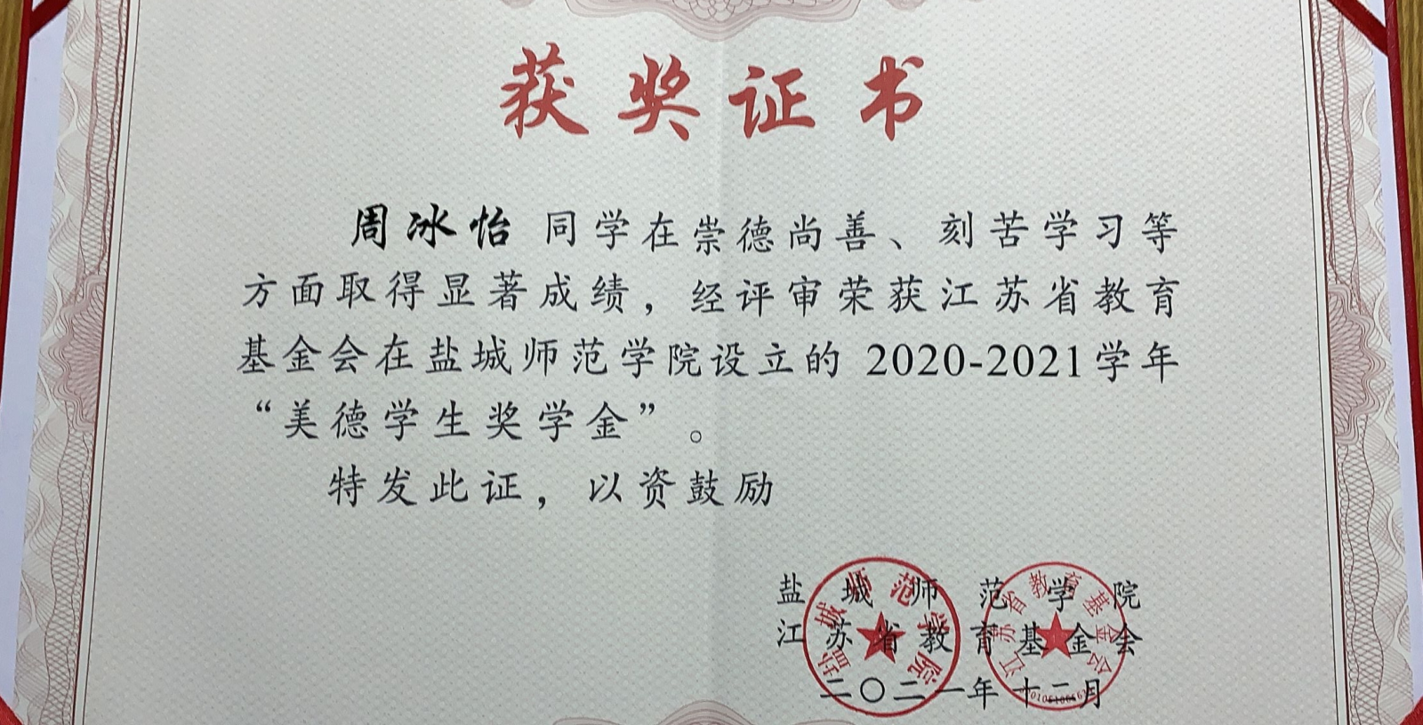 2020-2021年度“美德学生”奖学金
