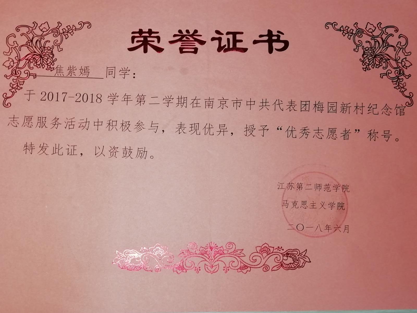 南京市中共代表团梅园新村纪念馆优秀志愿者