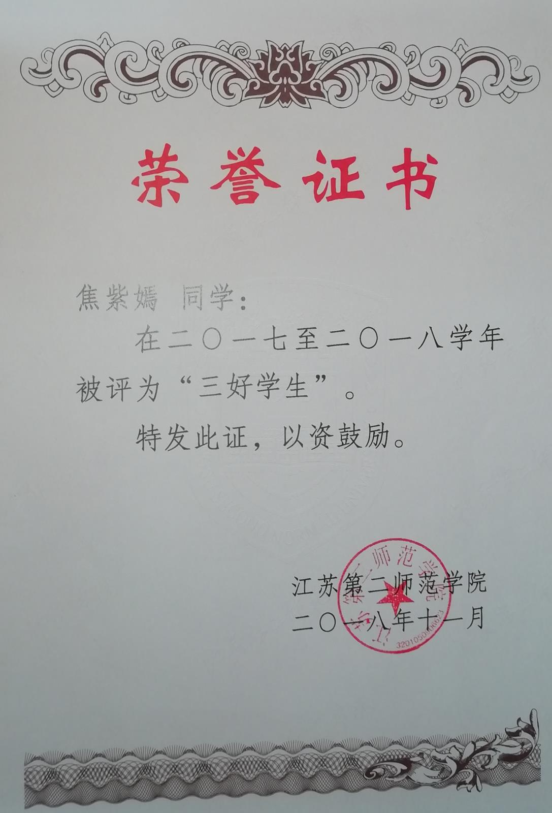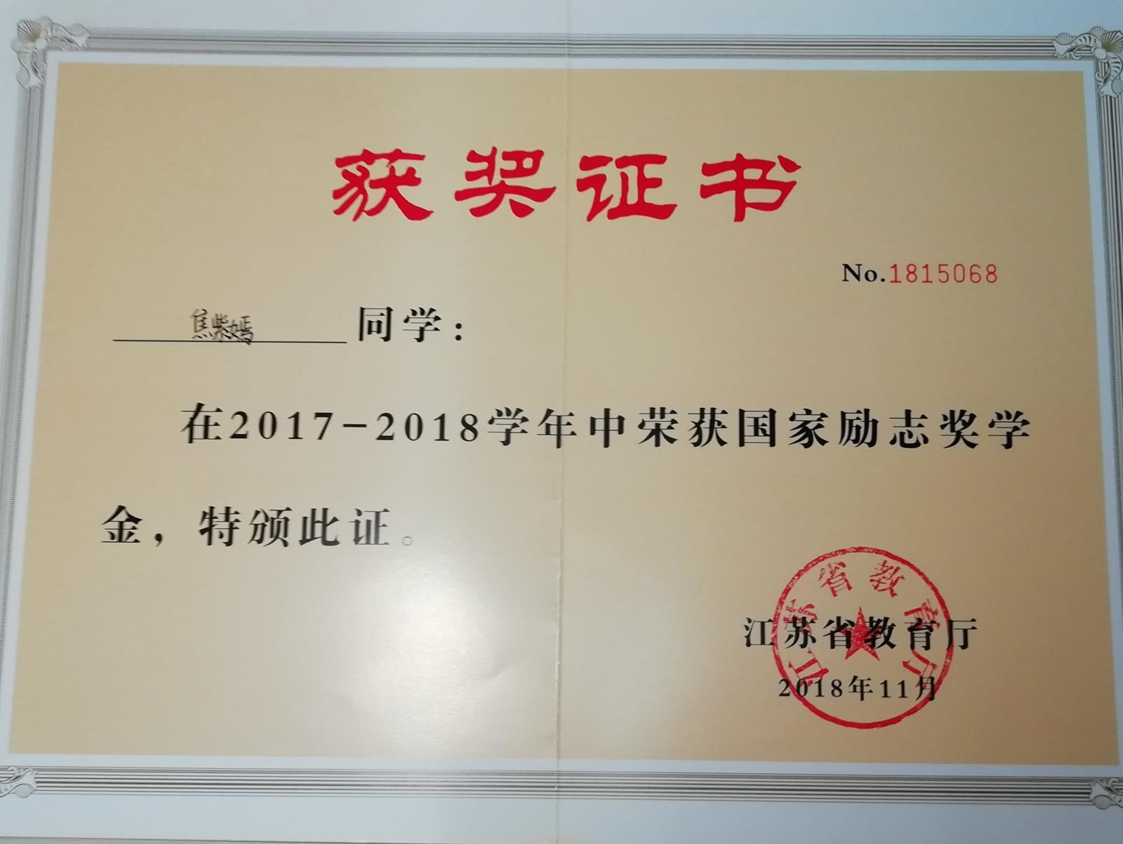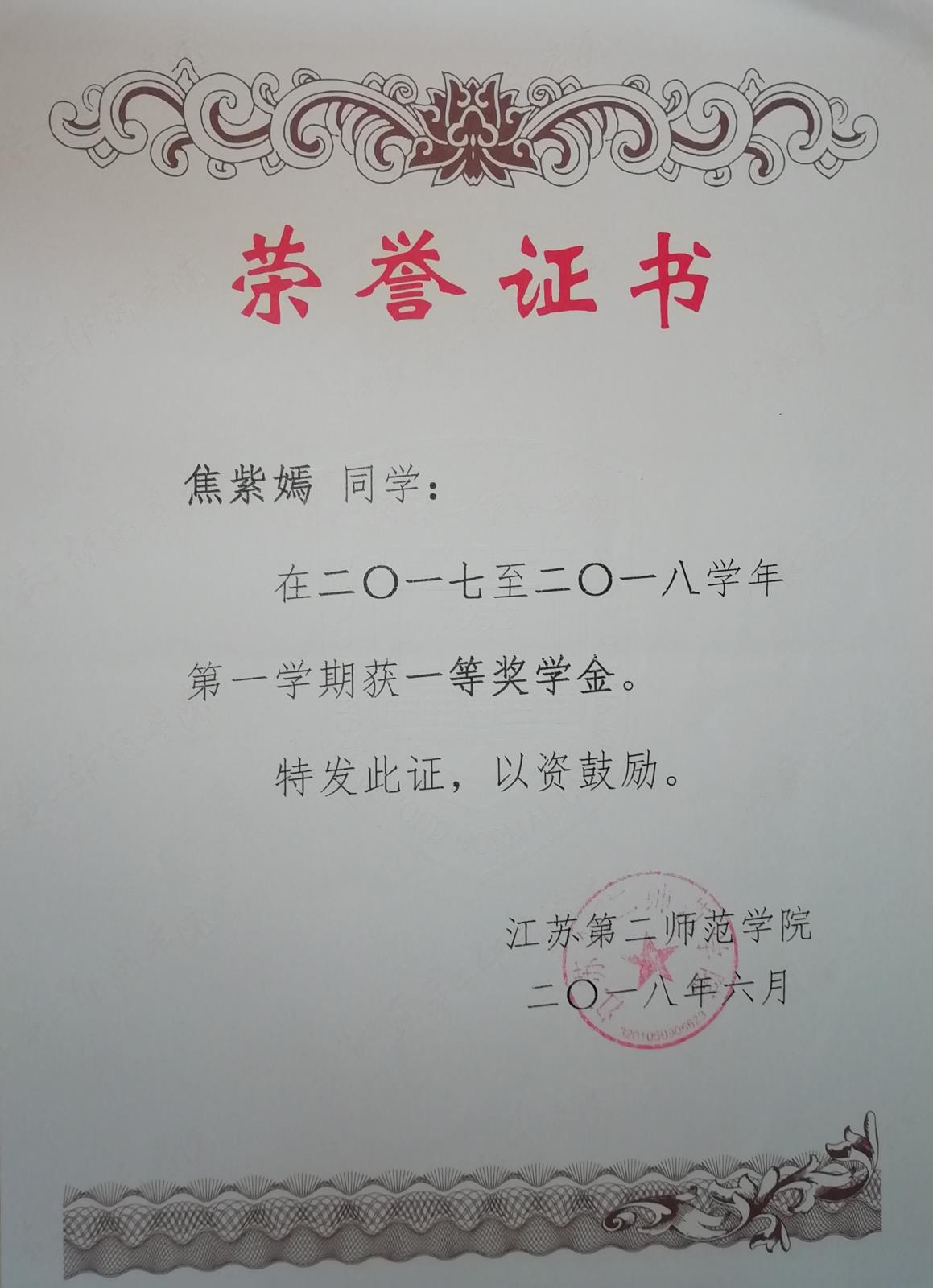 2017-2018学年第一学期获一等奖学金