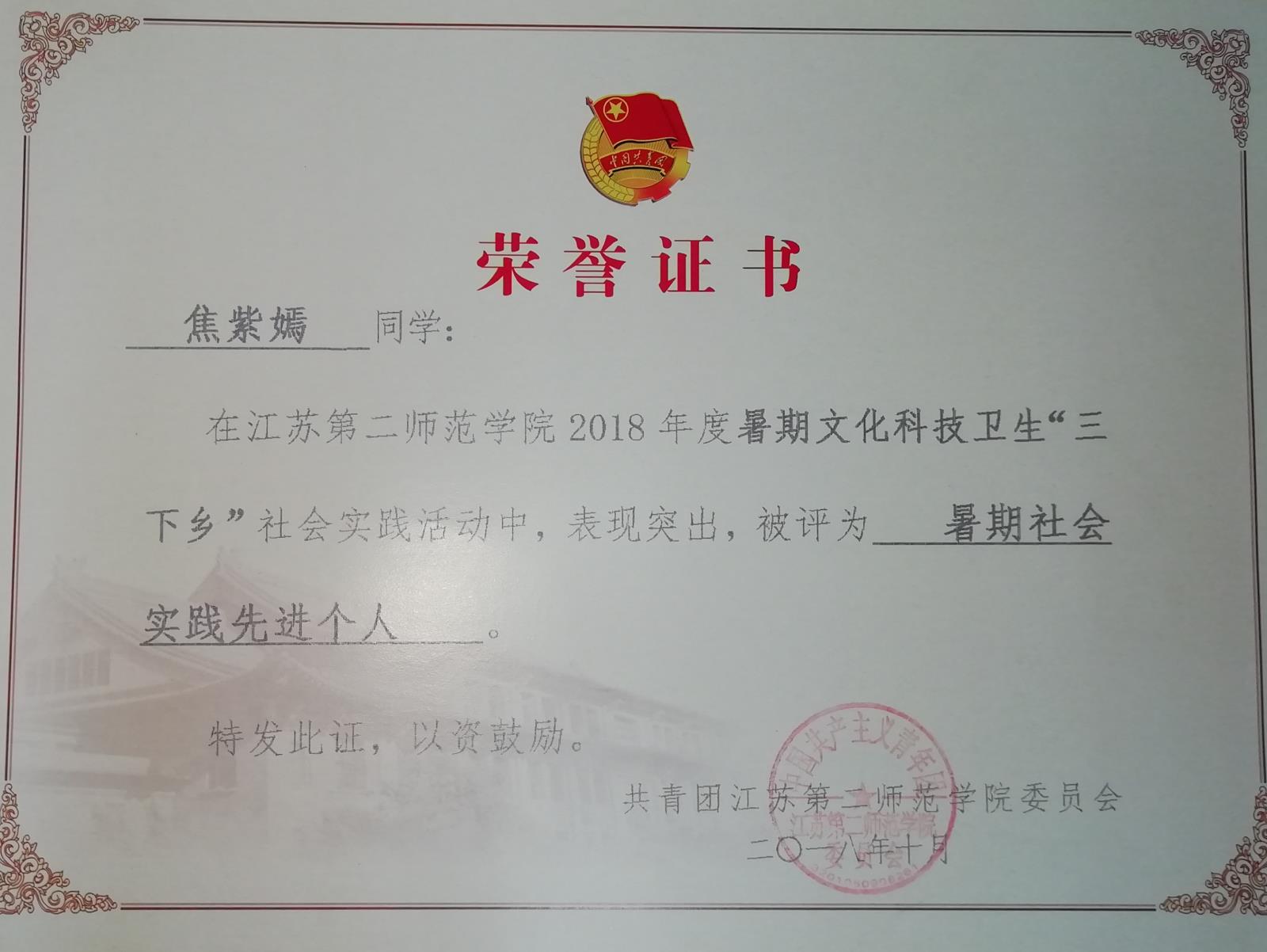 暑期社会实践先进个人