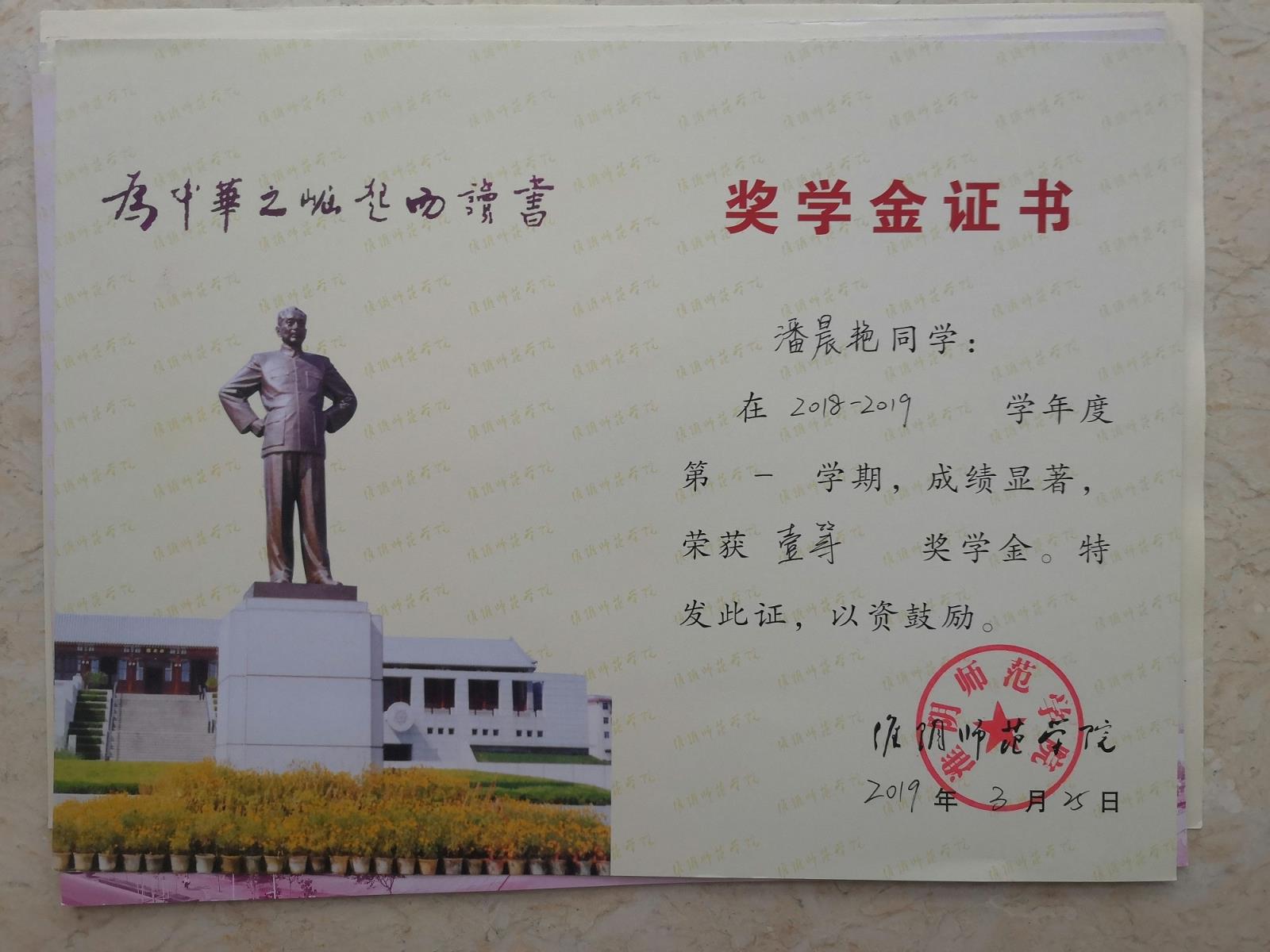 奖学金证书