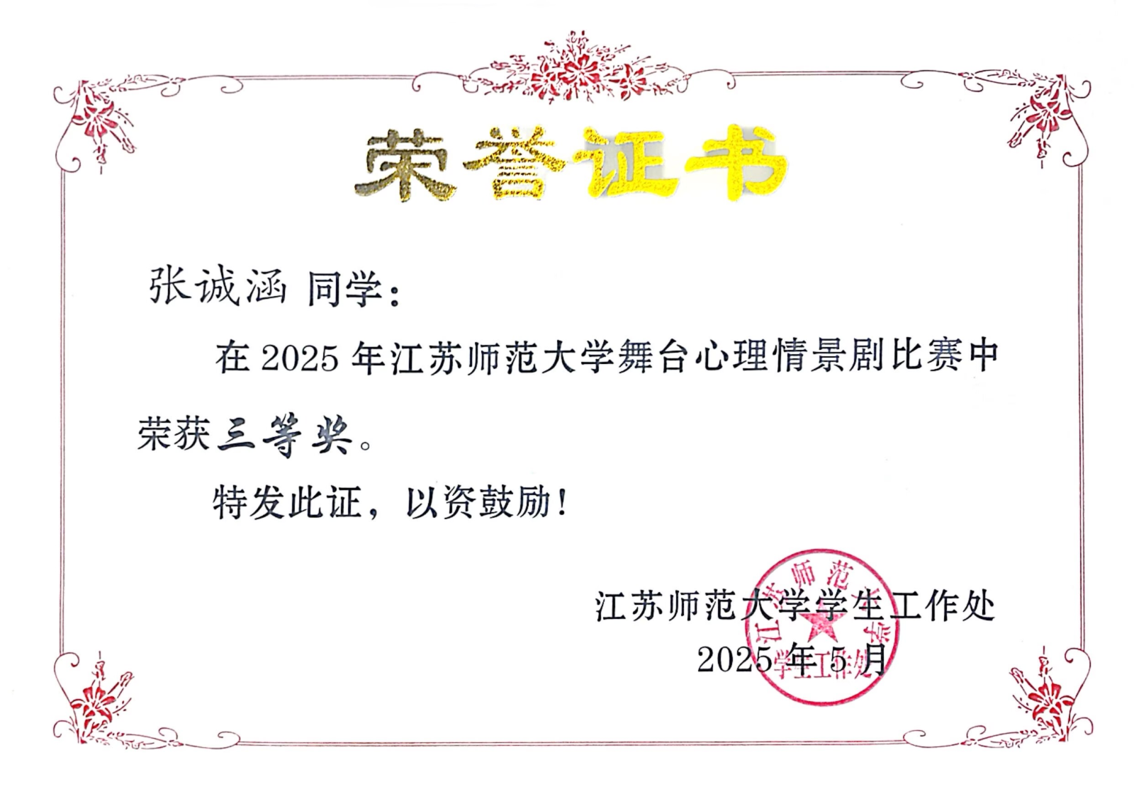 心理情景剧三等奖