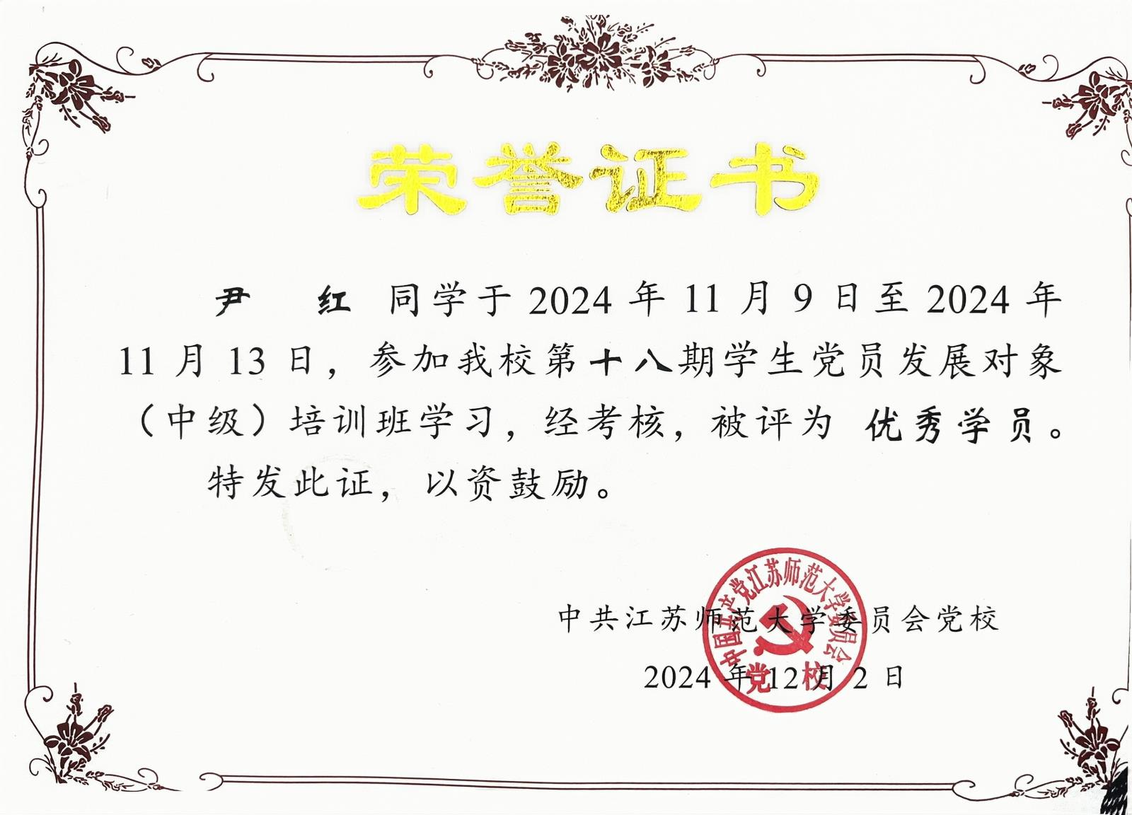 中级党校优秀学员
