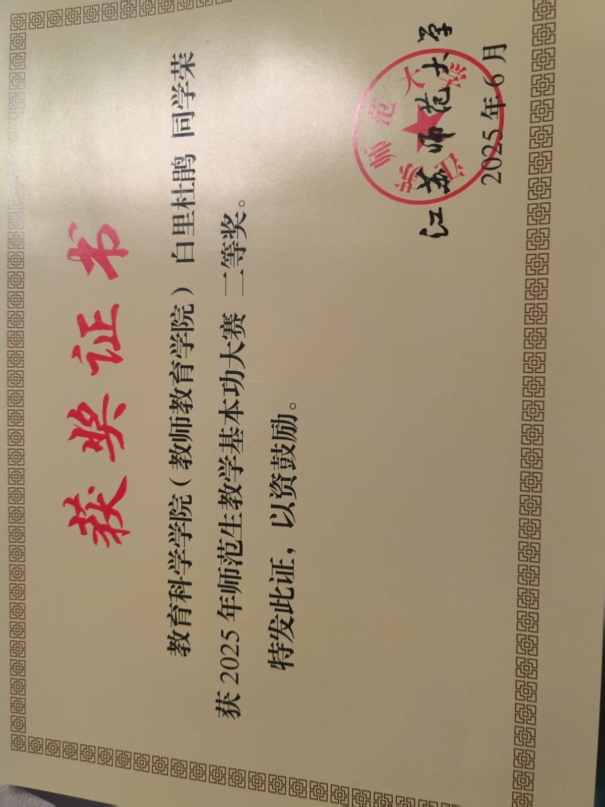 师范生基本功大赛三等奖