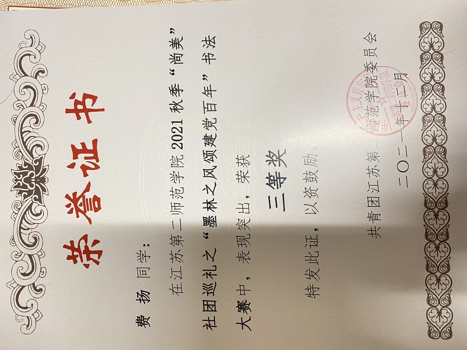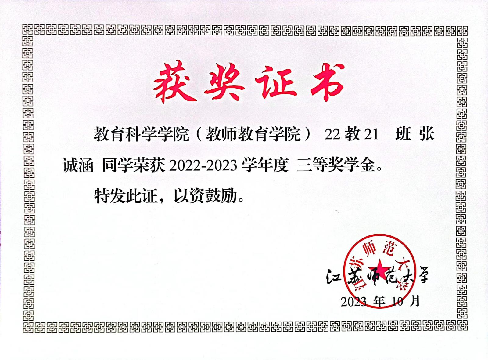 三等奖学金