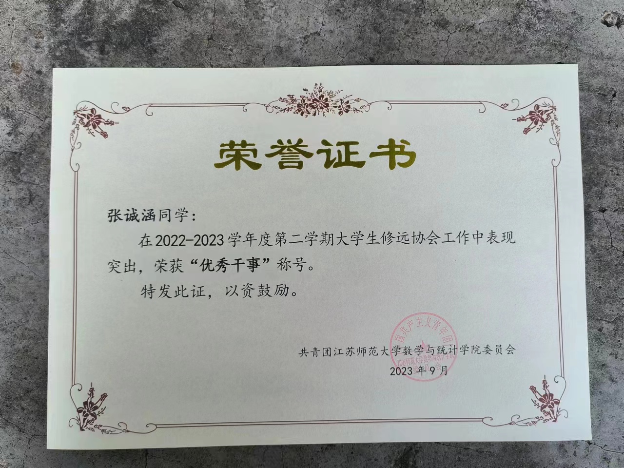 大学生修远协会优秀干事