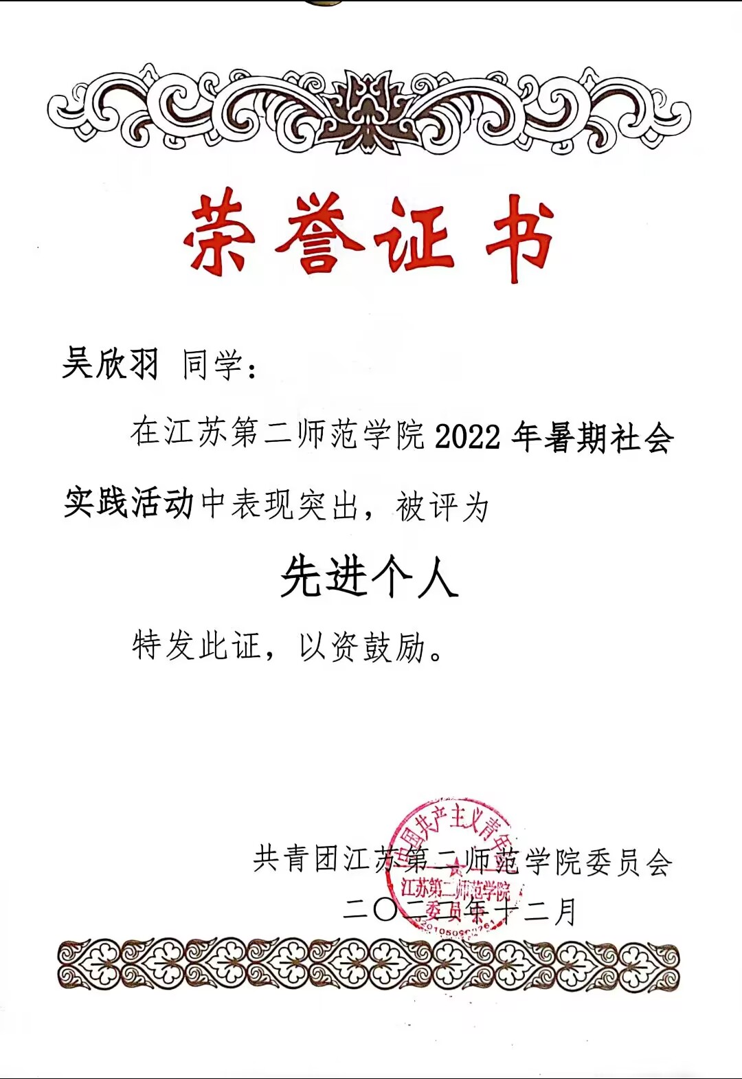 2022年暑假社会实践活动先进个人