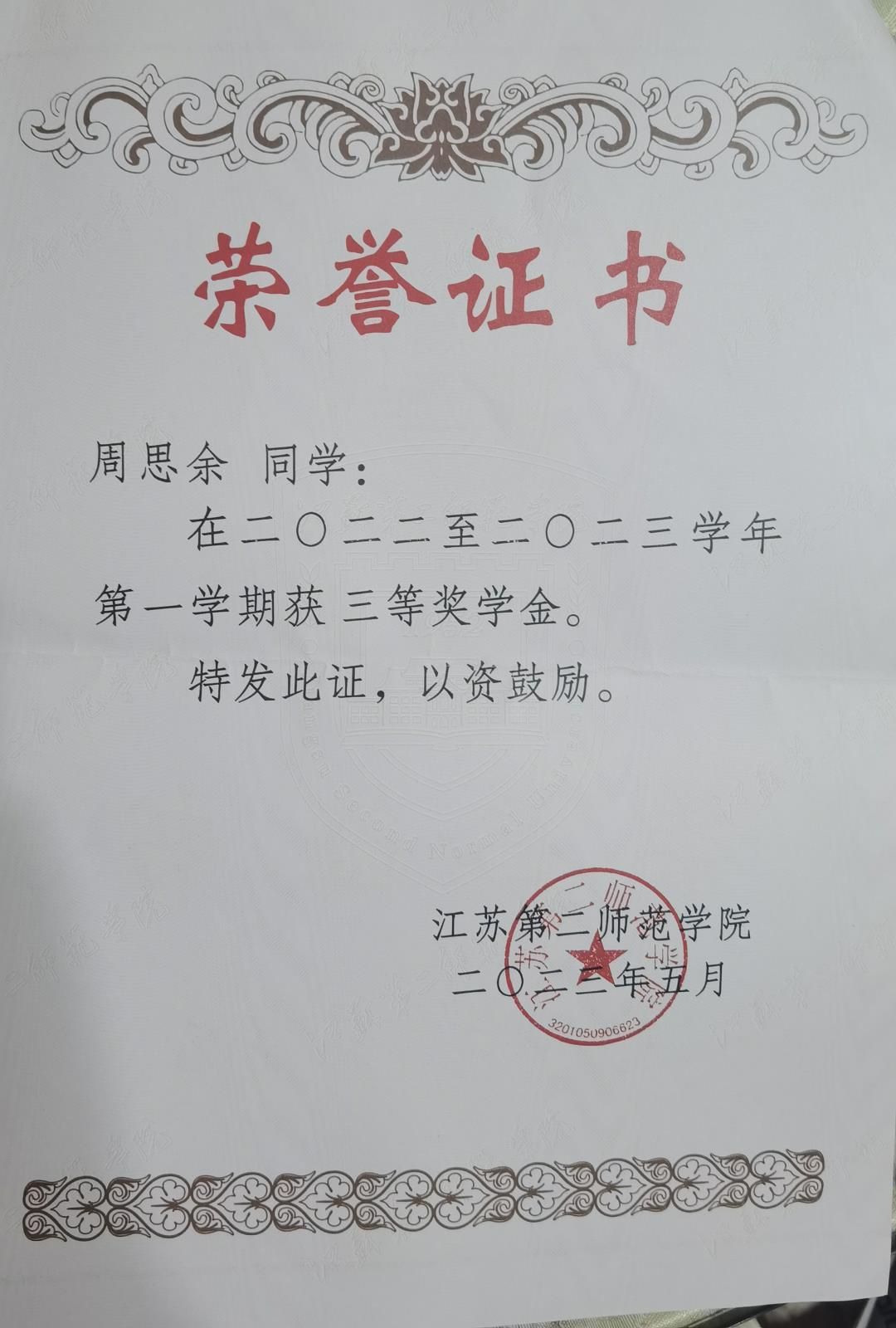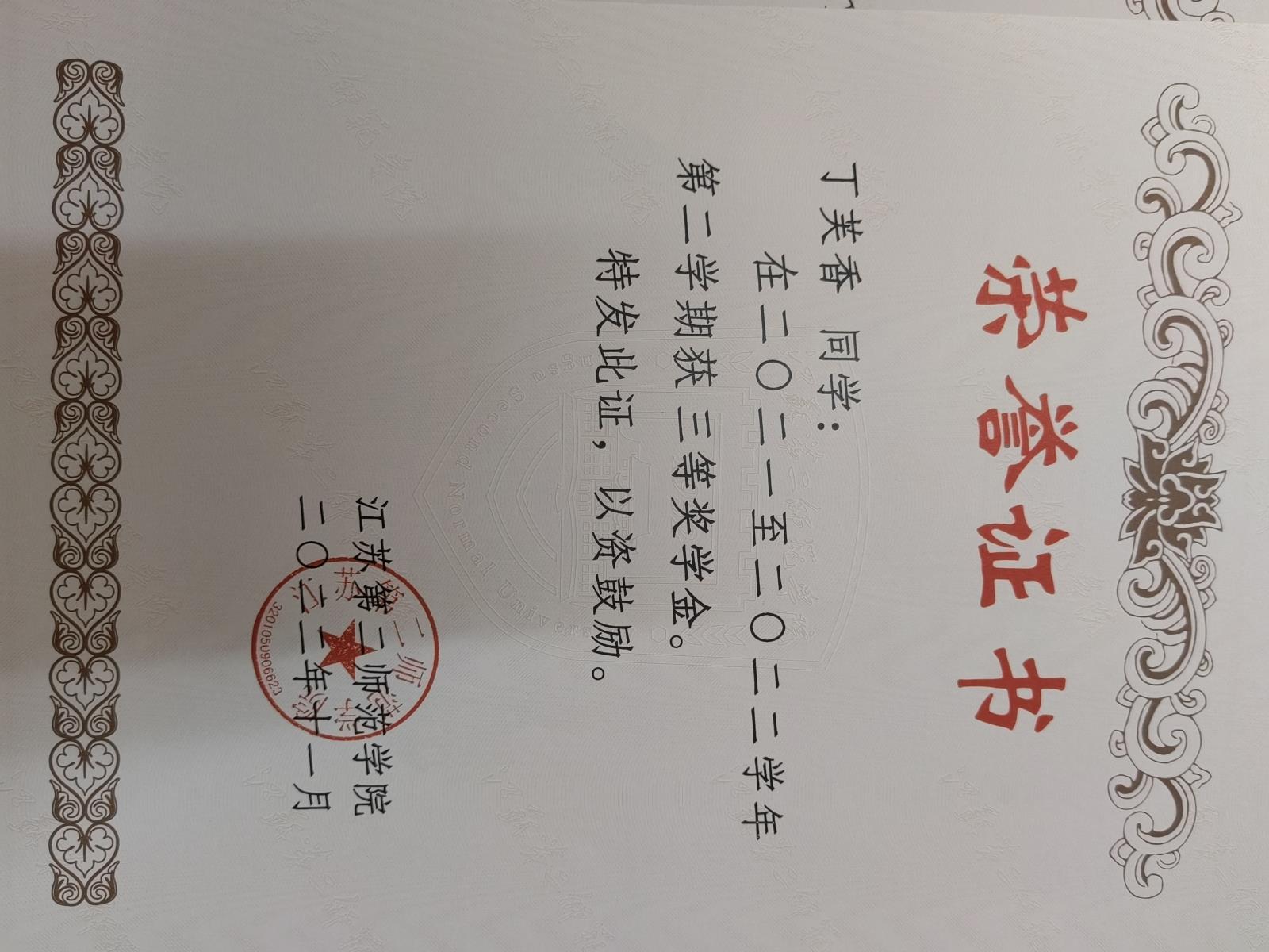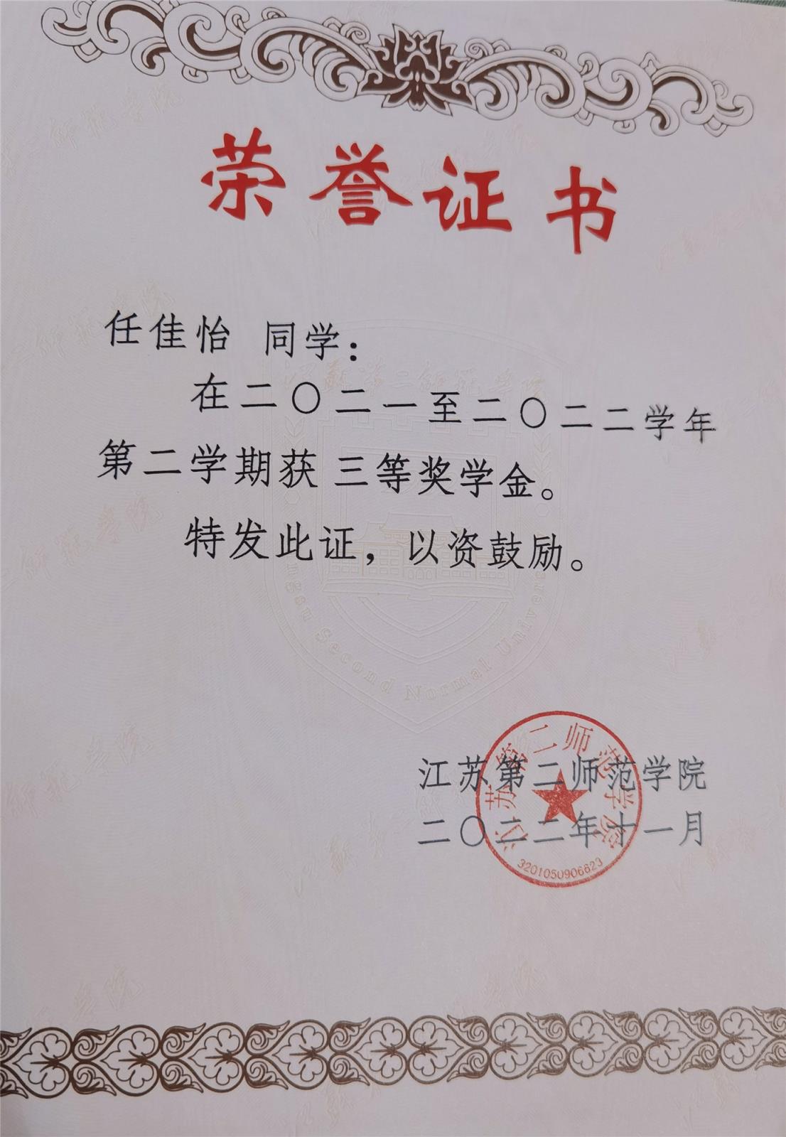 大二下三等奖学金