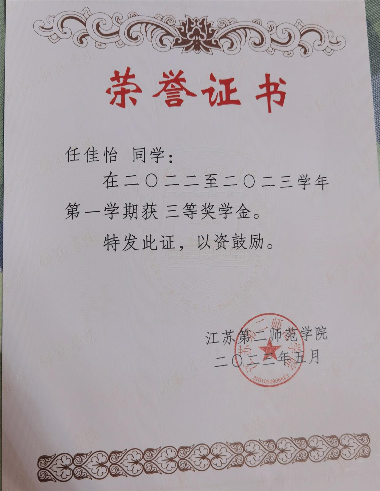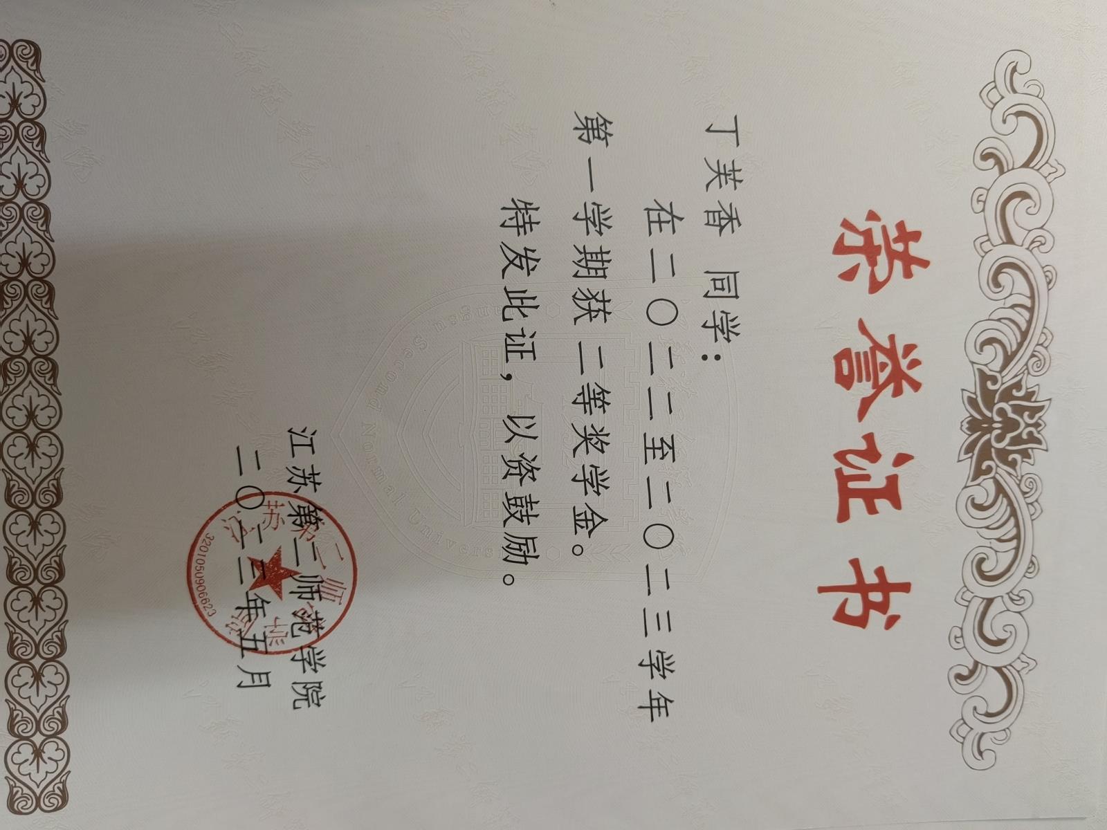 大三上二等奖学金