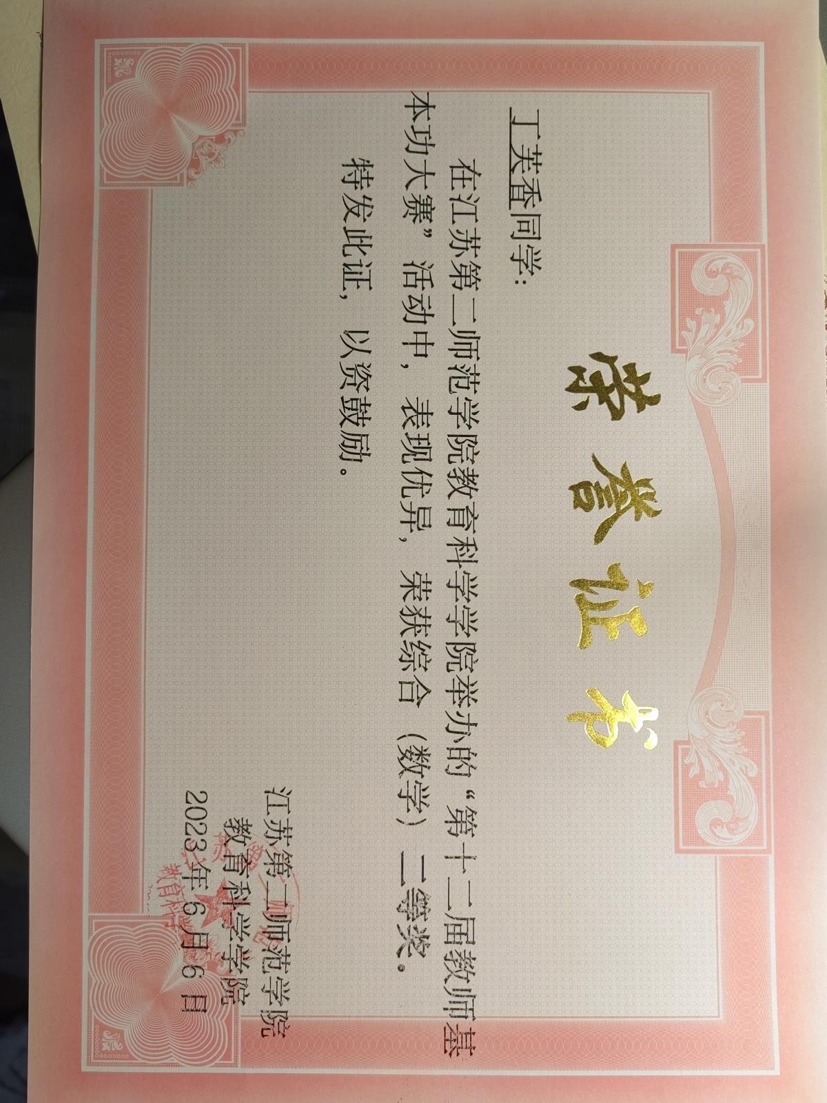 十二届教师基本功大赛综合二等奖