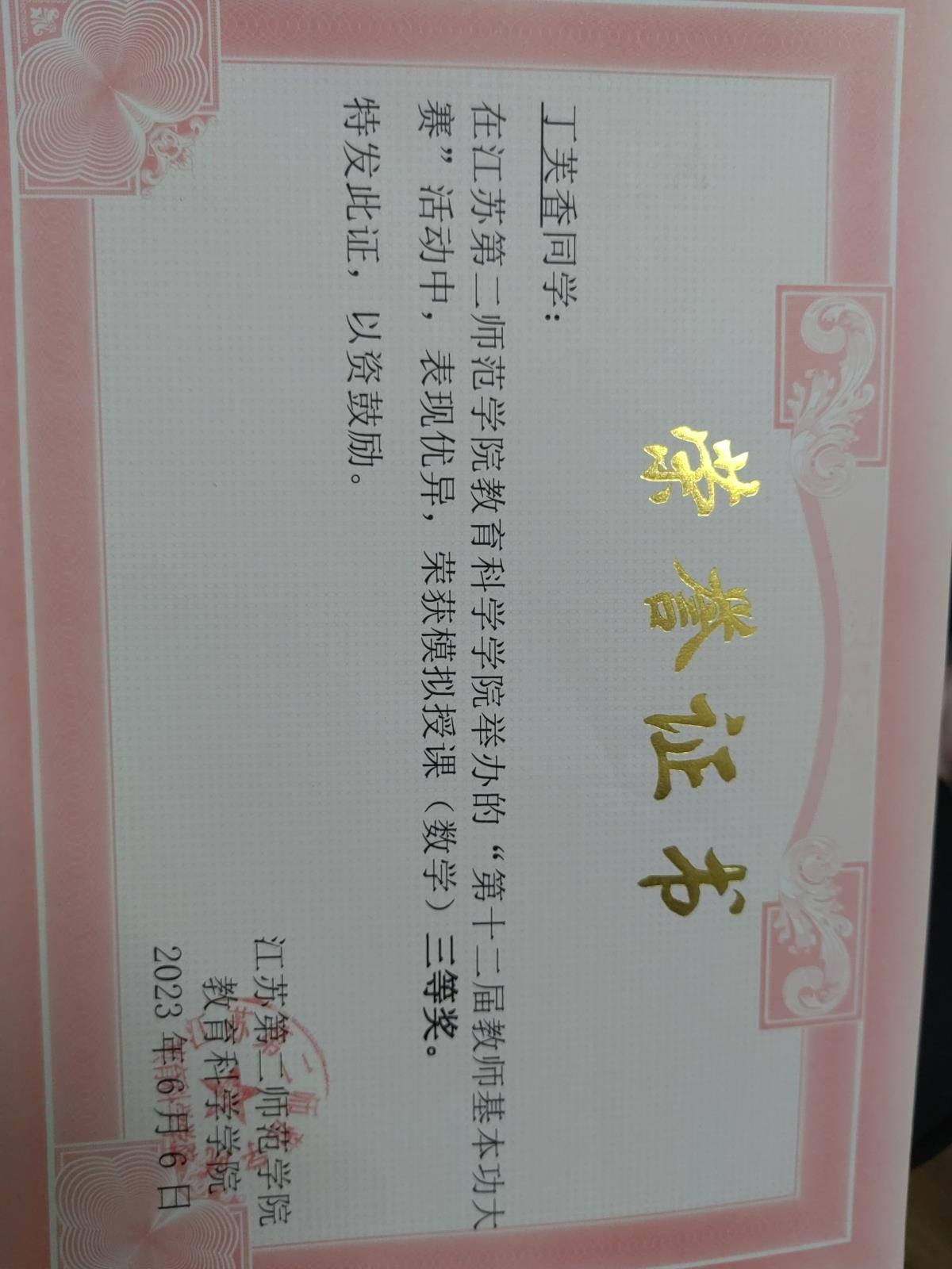 教师基本功大赛模拟授课三等奖
