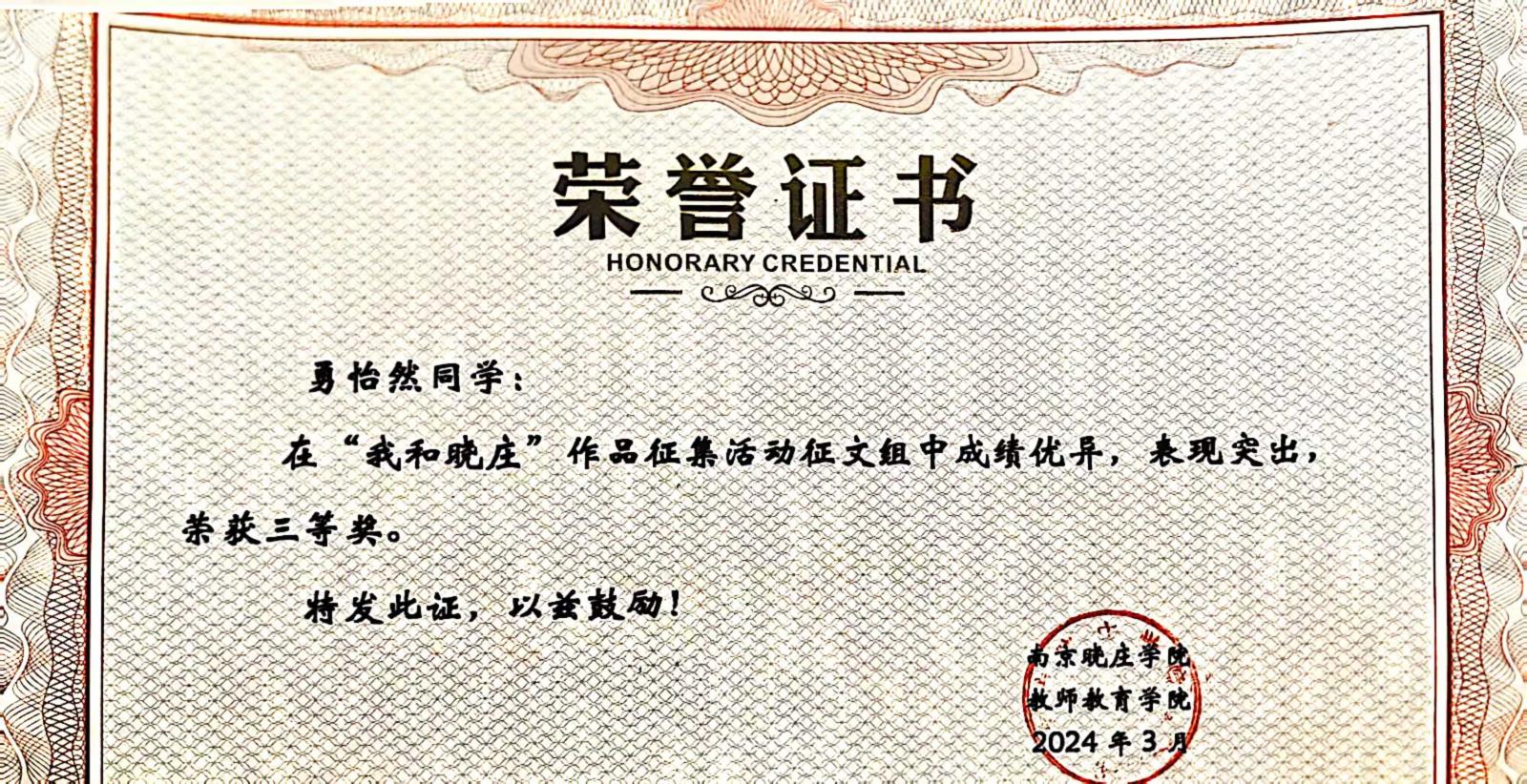 “我和晓庄”作品征集活动三等奖