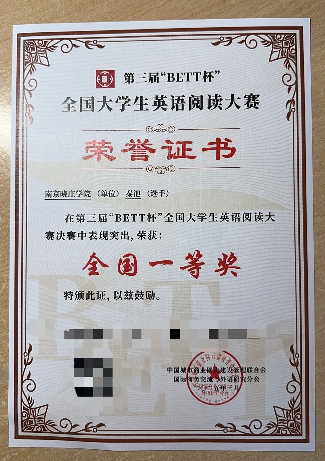 全国大学生英语竞赛二等奖