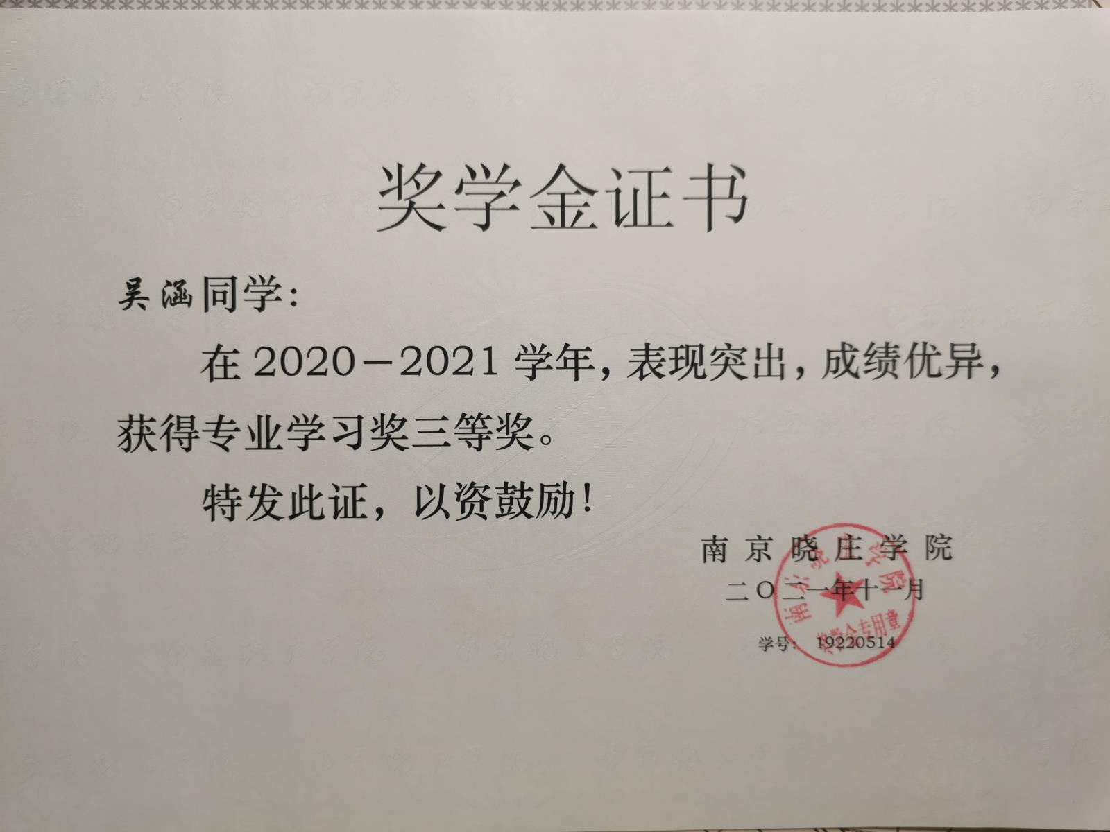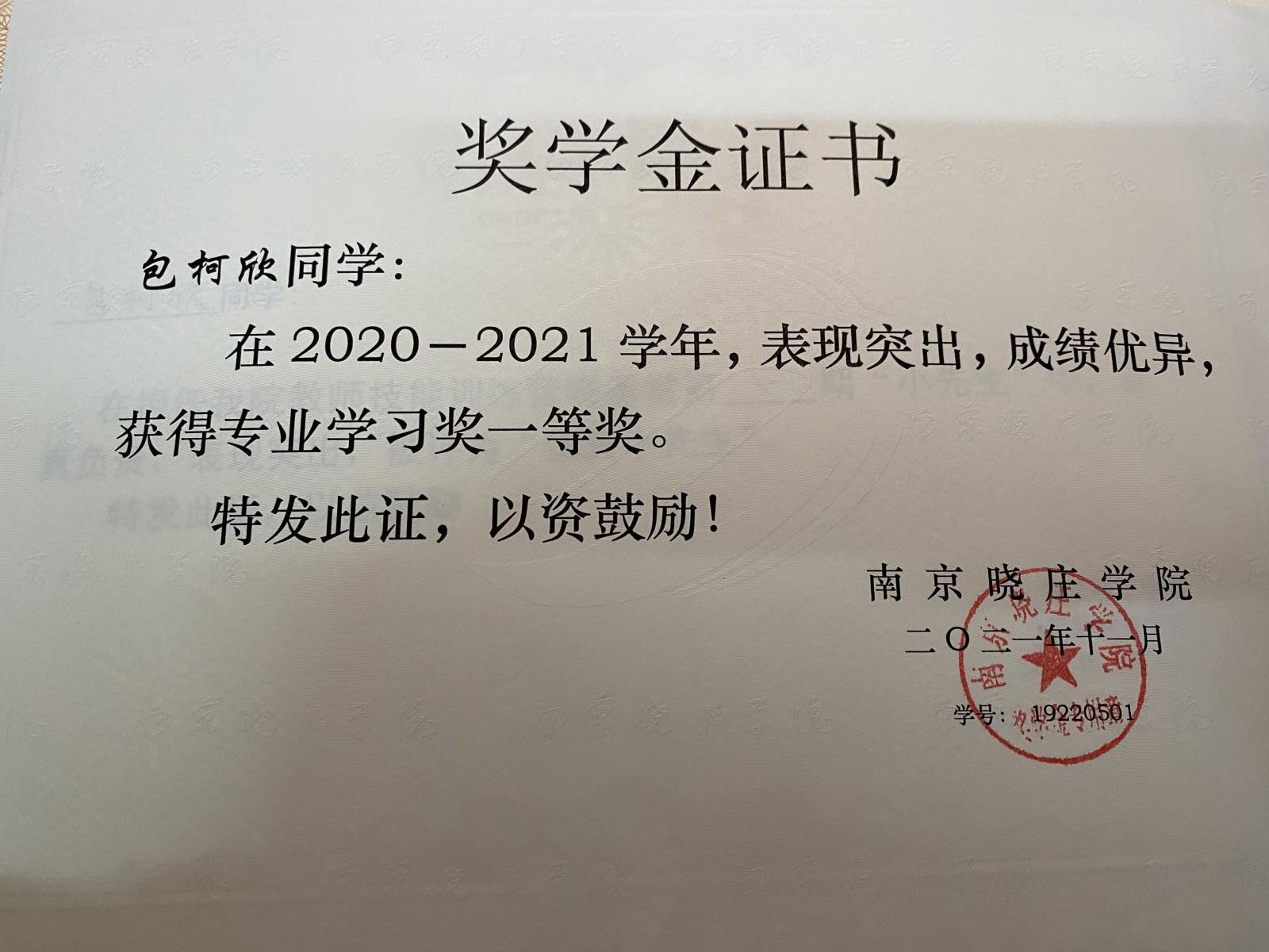 校专业学习奖一等奖