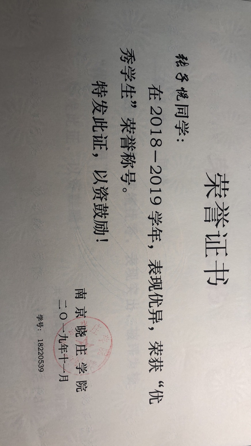 2018-2019 优秀学生