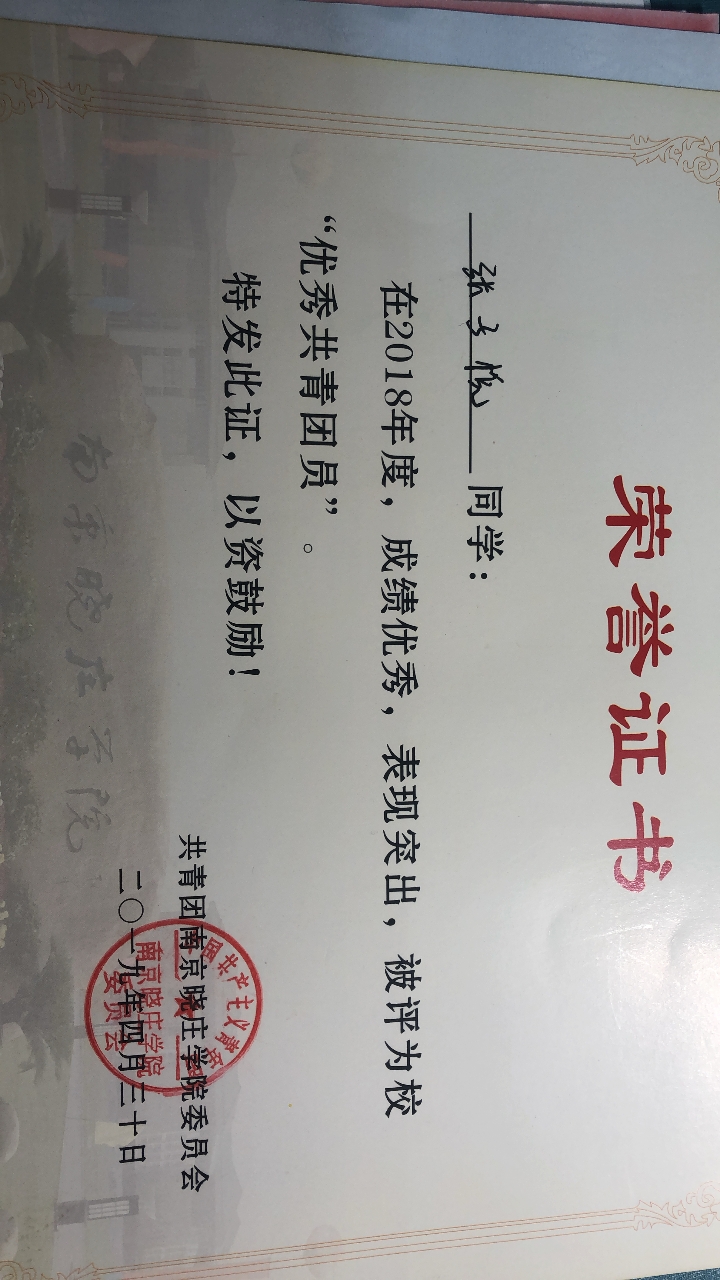 2019优秀共青团员