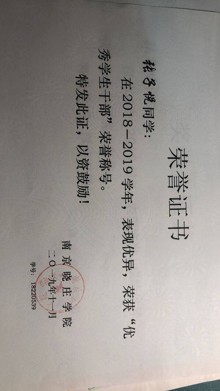 2018-2019 优秀学生干部