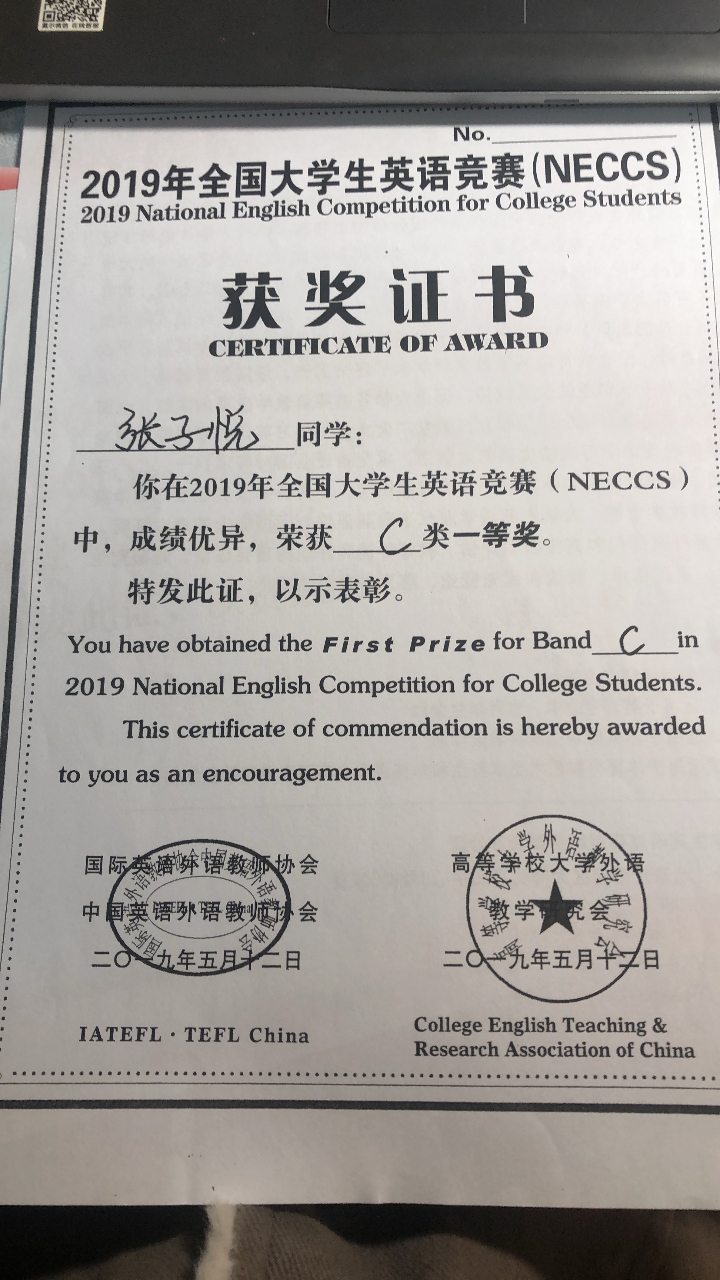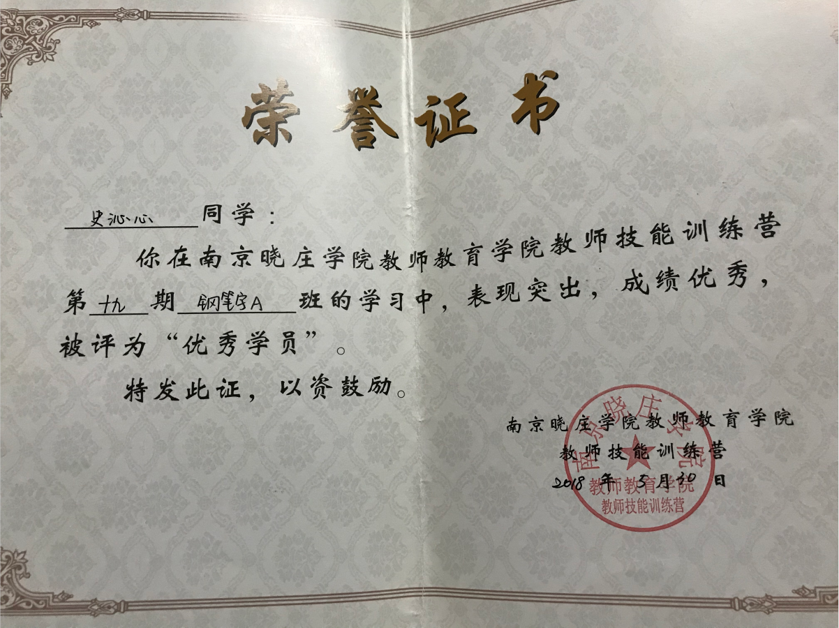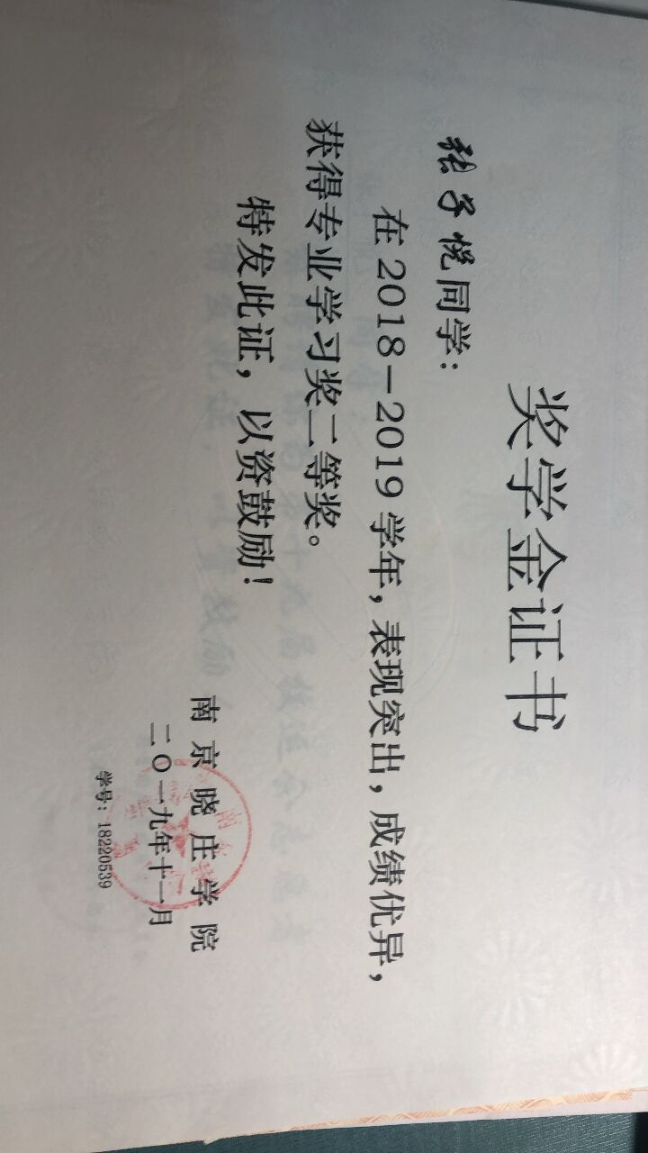 2018-2019专业学习二等奖