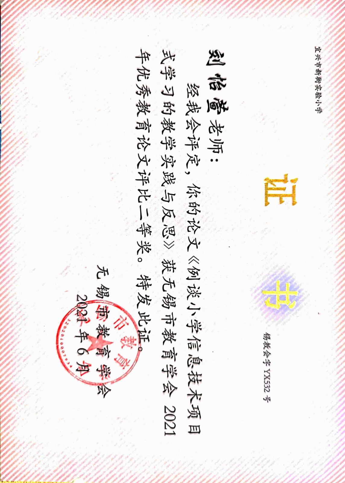 2021年宜兴市优秀教育教学论文二等奖