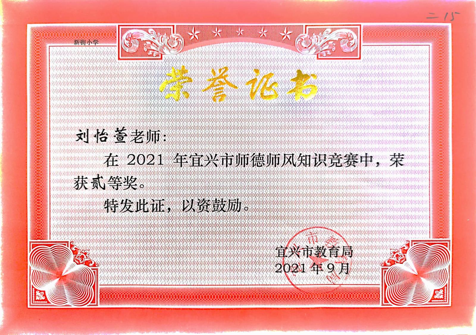 宜兴市师德师风知识竞赛二等奖