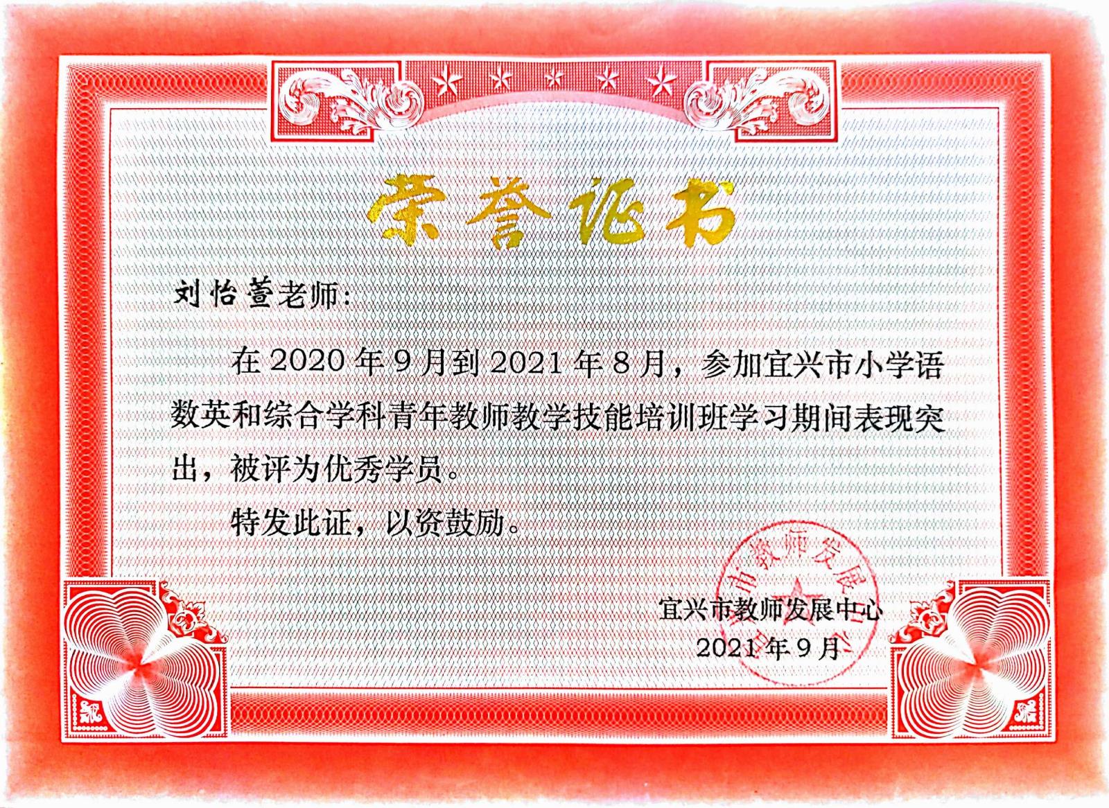 宜兴市小学语数英和综合学科青年教师教学技能培训班优秀学员