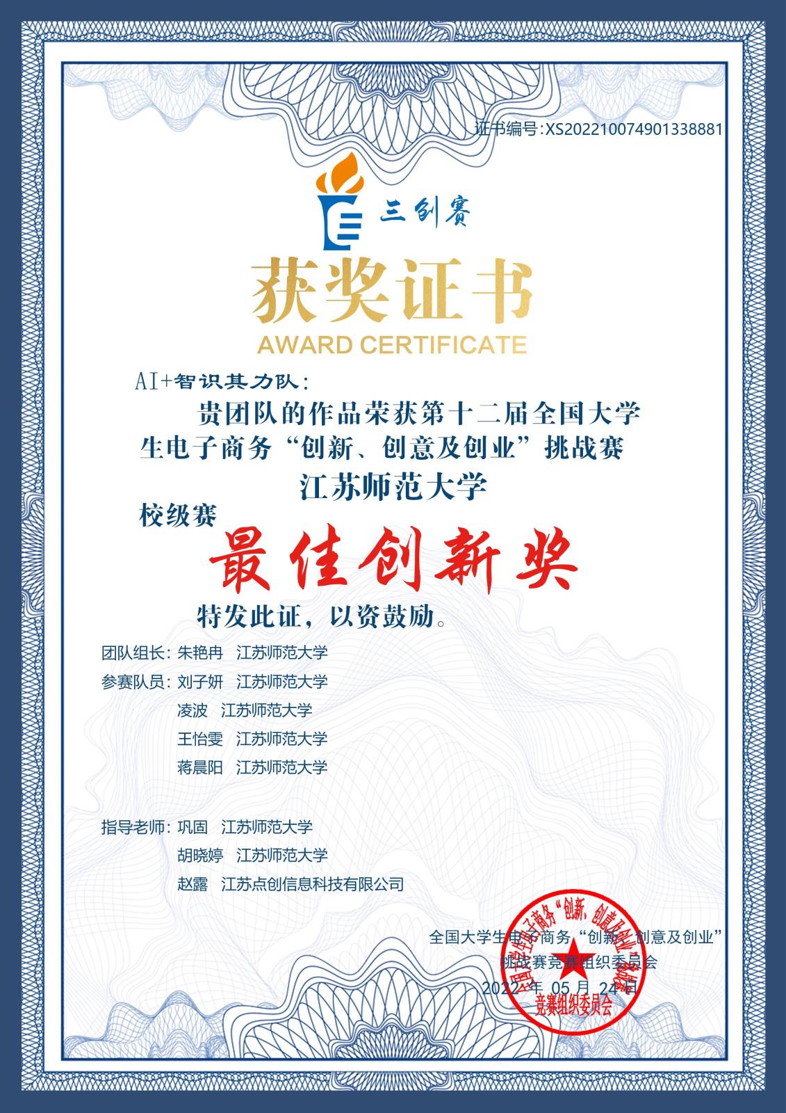 电子商务三创赛校级最佳创新奖