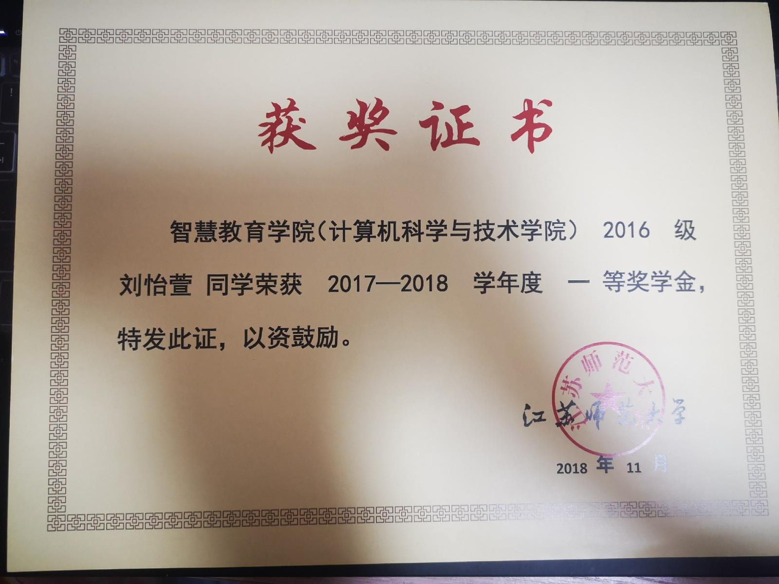 2017-2018学年度一等奖学金