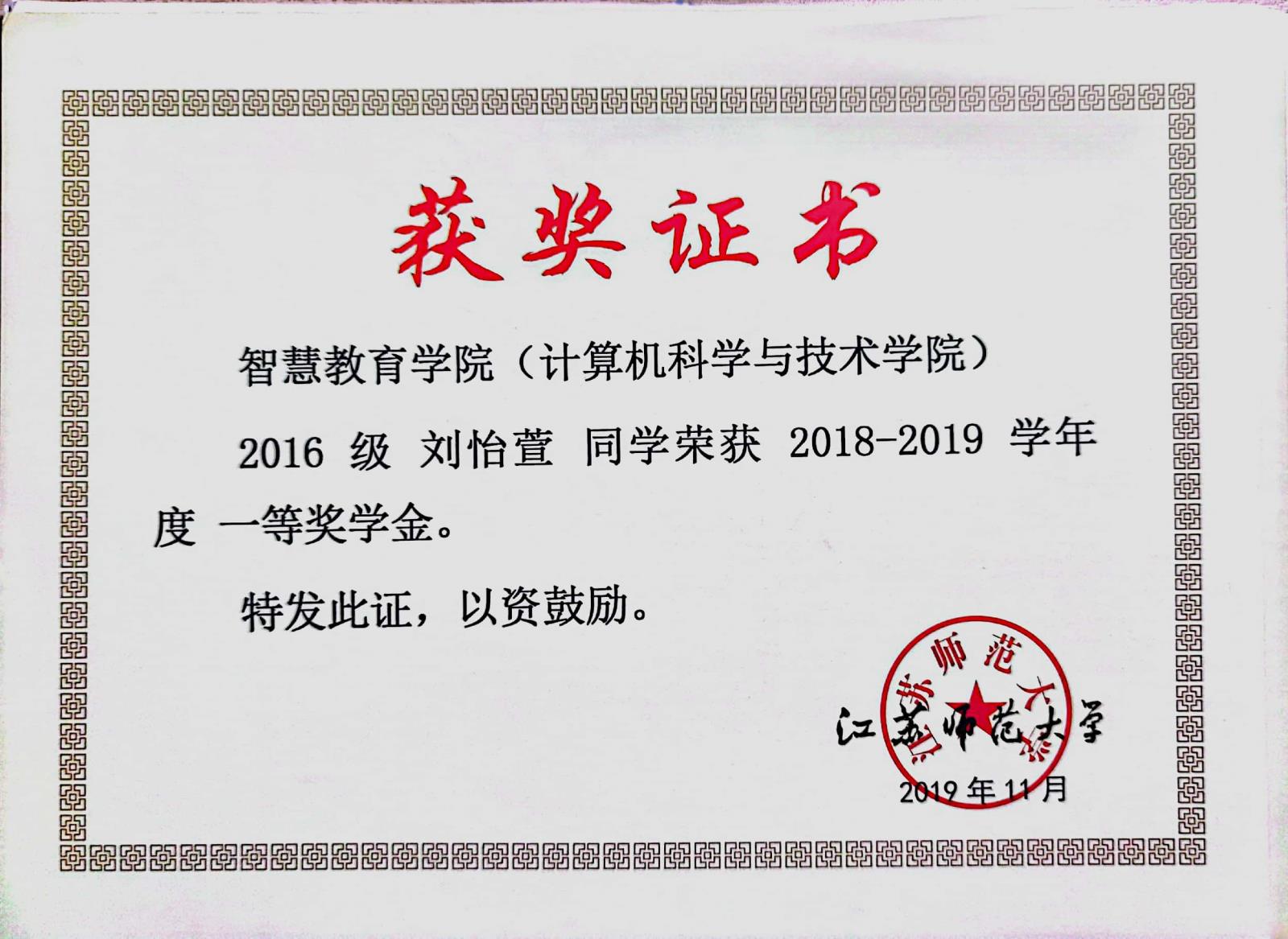 2018-2019学年度一等奖学金