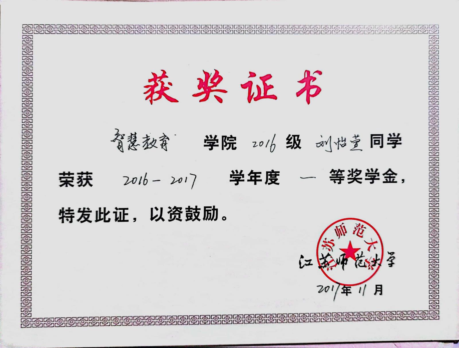 2016-2017学年度一等奖学金