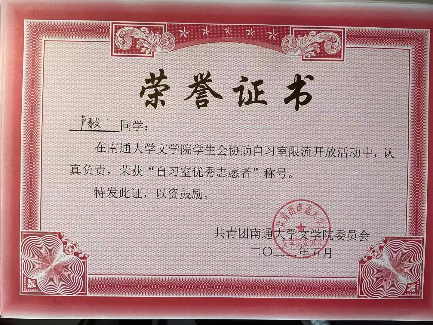 文学院心理协会“二十一天,养好习惯”活动三等奖