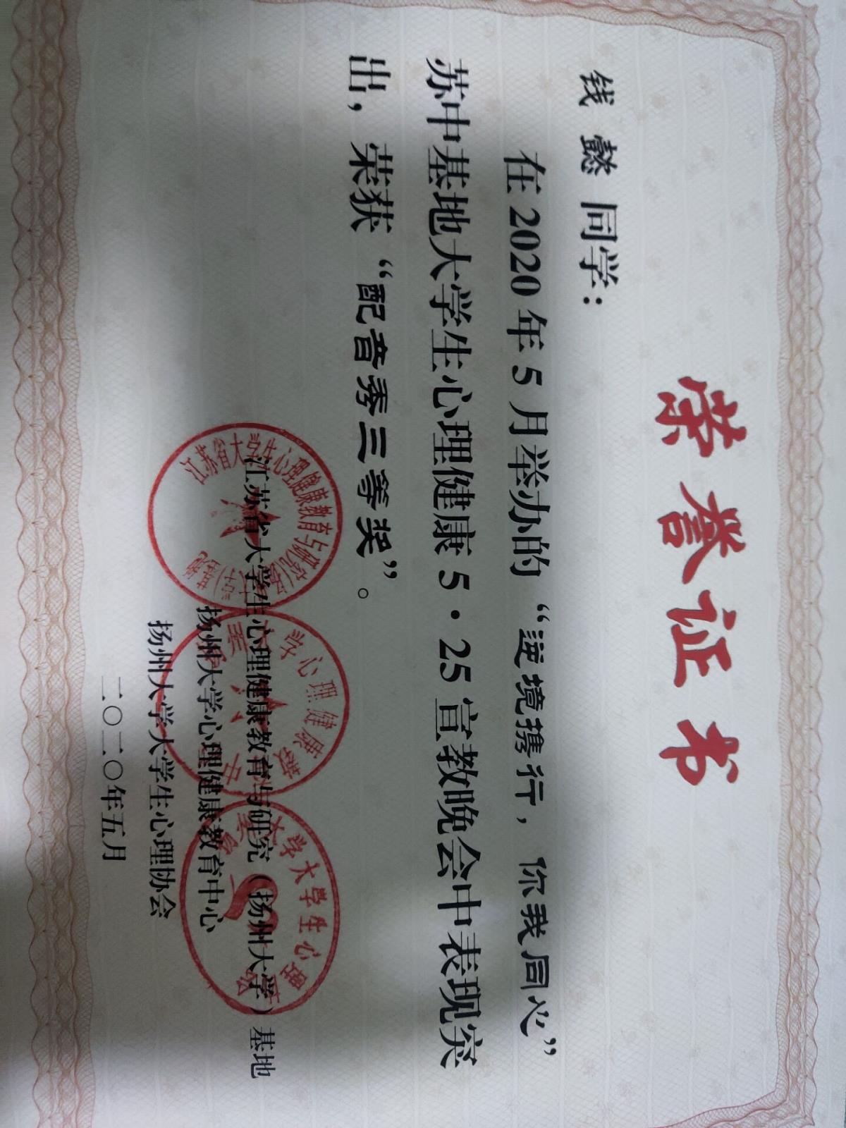 第九届江苏省师范生教学基本功大赛扬州大学外国语学院选拔赛二等奖