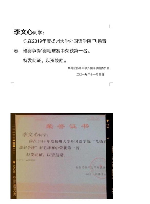 扬州大学外国语学院优秀共青团员