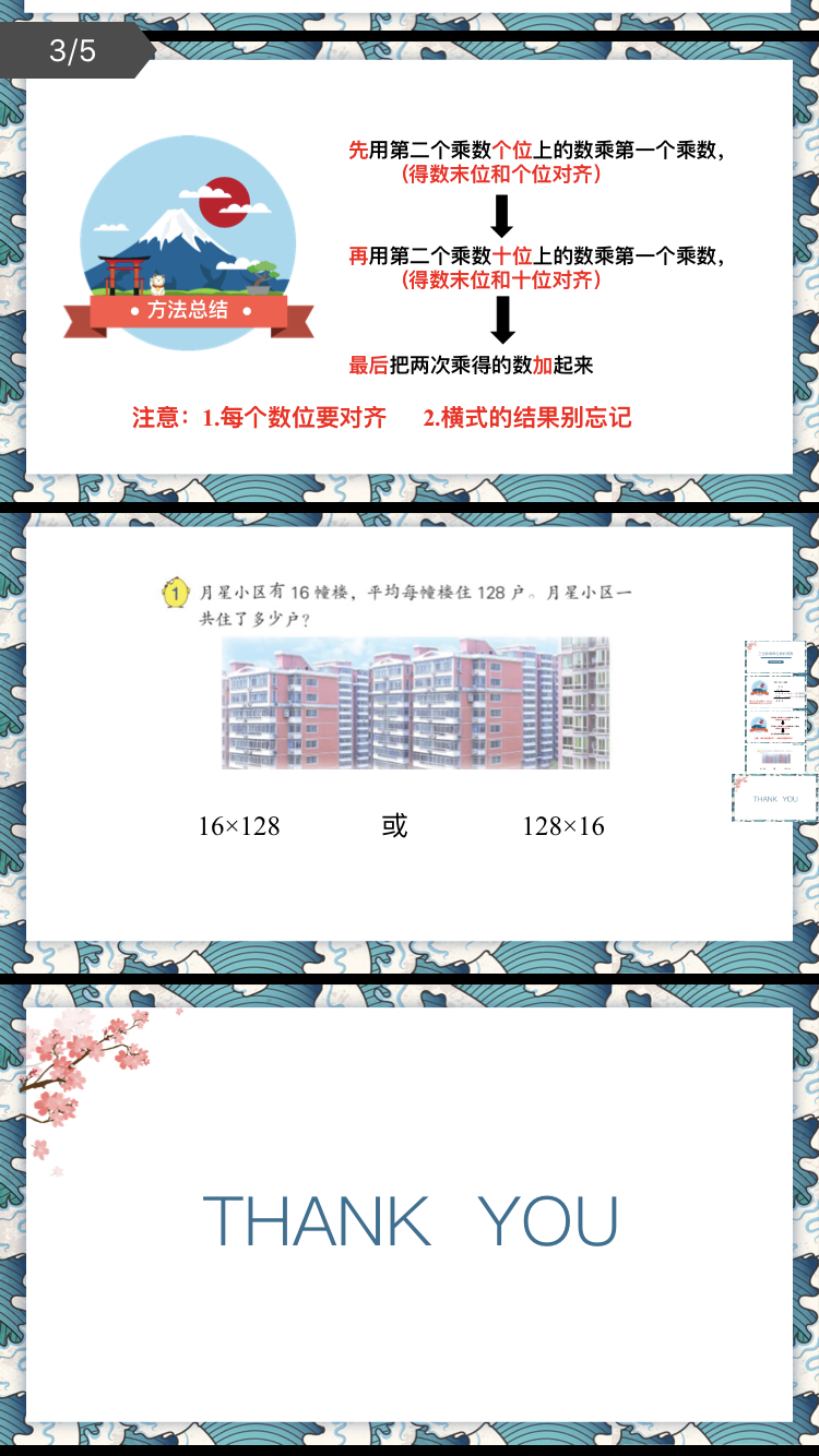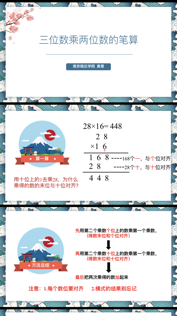 1.理解三位数乘两位数的计算原理,即“为什么这么算?”