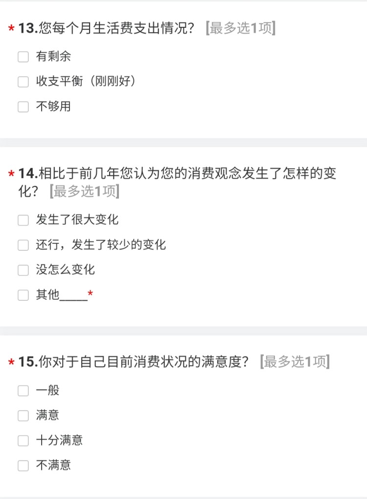 选择这个题目调查的原因,一是想研究新中国成立以来经济的不断发展对于我们的消费观产生了哪些巨大的影响,又是如何改变我们的消费观的。二是作为当代大学生,我们的生活费用几乎都来自父母,是父母辛苦所得。我们需要知道有哪些是值得借鉴或是应当取缔的消费观,以便帮助我们形成正确而积极的消费观。三是希望能够通过本次调查,总结出当代大学生的一些主要消费方向。因为作为即将踏入社会的一批新兴力量,他们的消费观走向将大程度影响着之后的各行业发展,对产业投资、新兴产业的崛起起着重要导向作用。本次调查,基于对自身能力和所在群体的考虑,我们选择了大学生这一群体作为主要调查对象。并在开学初期以线上调查为主,开展了问卷调查,针对采访等调查方式。