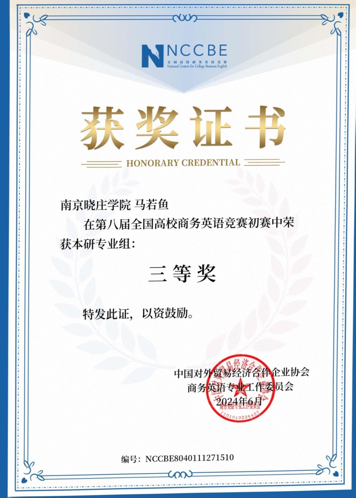 商务英语比赛证书