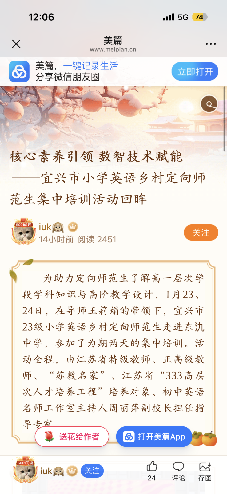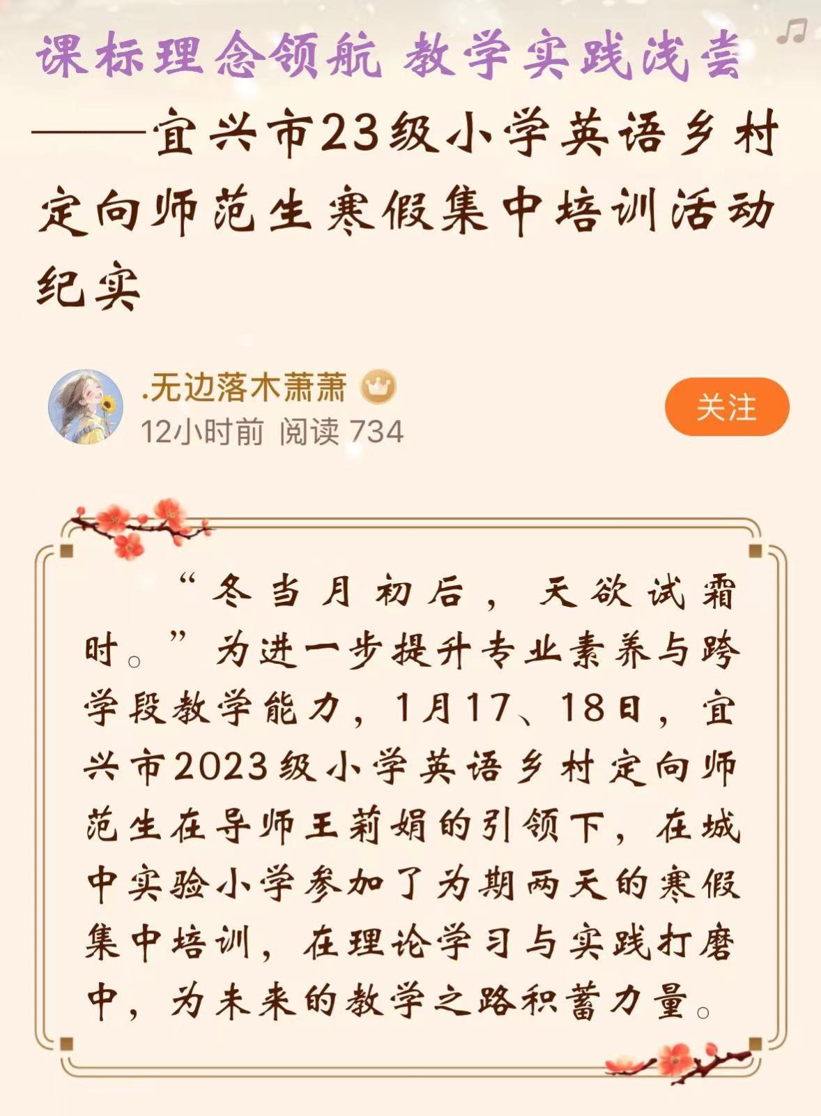 聚焦课堂 慎思成文 ——宜兴市23级小学英语乡村定向师范生寒假集中培训活动纪实
