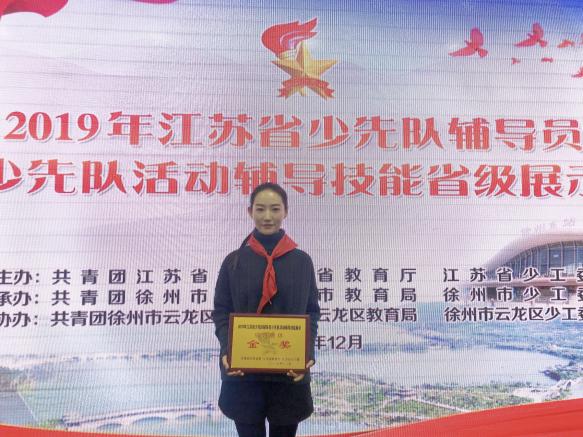 在紧锣密鼓的半个月筹备后,她一举获得了江苏省少先队辅导员少先队活动辅导技能展示少先队基本理论知识测试特等奖,