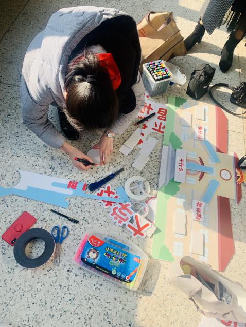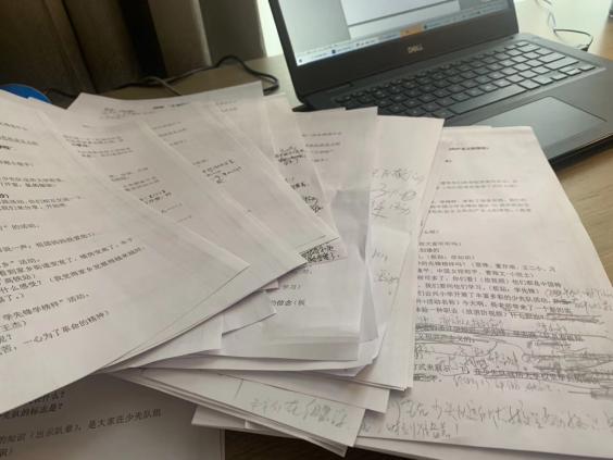 因为没有试上过,我能保证的只有把教案熟记于心,把更多的智慧用来在课堂中引领队员,与队员交流互动,发挥队员的主体作用。我忘记了疲惫和饥饿,对着空气反复演说我的课,温暖的走廊时而吹过冷涩的风,当我说课时我总能不经意和团队伙伴们温柔亲切的眼神对上,他们有的蹲在地上帮我抢时间做道具,有的帮我在现场调适课件,准备摄影工具。周书记就一直微笑看着我,一边用坚定的眼神给我加油,不停模拟学生的回答帮我对课……他们都默默在陪伴我……