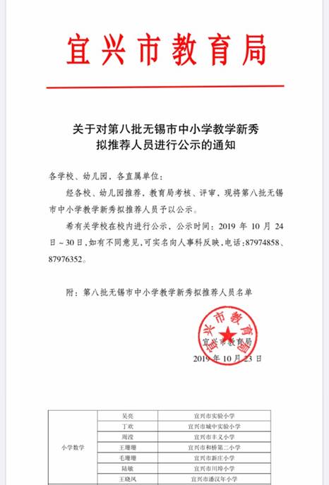 一年中,工作室成员晋级首批宜兴市名教师1人,晋级无锡市教学新秀1人,晋级宜兴市教学新秀1人,获江苏省小学数学优秀课评比一等奖第一名1人,无锡市小学数学优秀课评比一等奖1人;江苏省以上正规刊物发表专业类文章12篇,其中1篇被大复印资料《小学数学教学》全文转载,另有无锡市级以上(含)获奖论文(案例)20余篇。