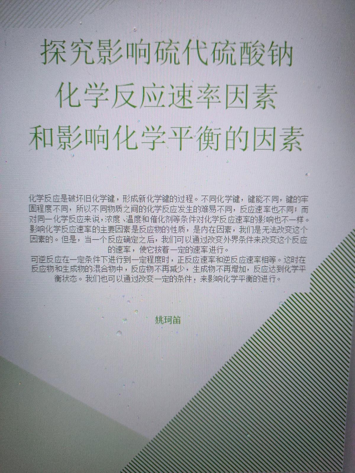 探究影响硫代硫酸钠化学反应速率因素和影响化学平衡的因素