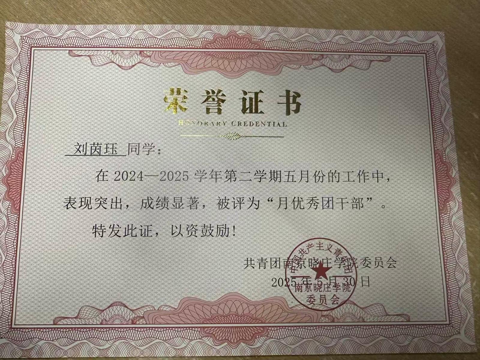 三月、五月“月优秀团干部”