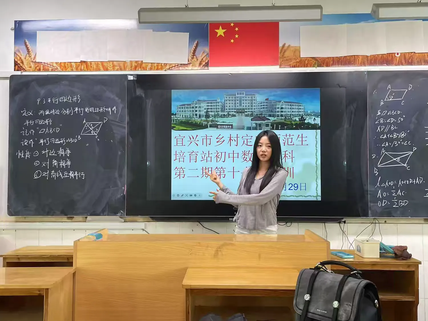 ‍    首先,在汤导师的部署下,2023级学员围绕《平行四边形》进行课堂展示。每位学员全心投入备课,细致雕琢教学方案,以充沛的激情和富有感染力的表达,精彩呈现各自精心设计的课程内容。同时,2021级学员进行了精辟而深刻的点评。