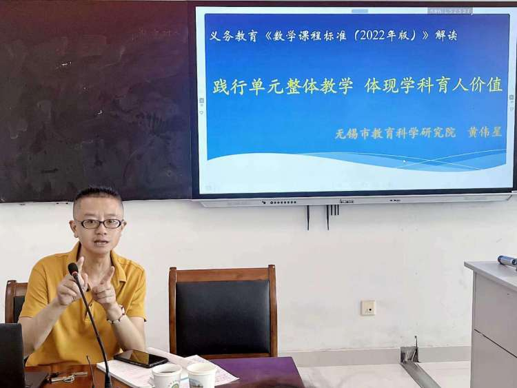 休息过后,无锡教育科学院小教研究室黄伟星主任结合新课标和教材编写,向师范生们作《践行单元整体教学,体现学科育人价值》的专题讲座,点燃了新一轮的思维火花。
